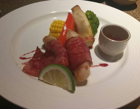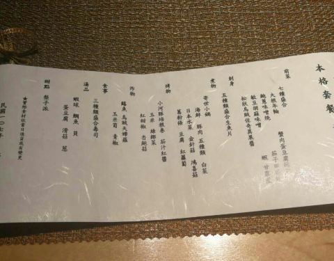 服务很不错,虽然自己带酒要开瓶费,服务员有能力跟客人讨论酒和一起喝口感怎么样,欣赏,菜不成,尤其河豚培根,一点河豚味道都没有,食材十分普通,天妇罗煮的好,粉薄,没有焦,甜点不错,普通甜度,派松软。价格高,不合理,一人约台币2400