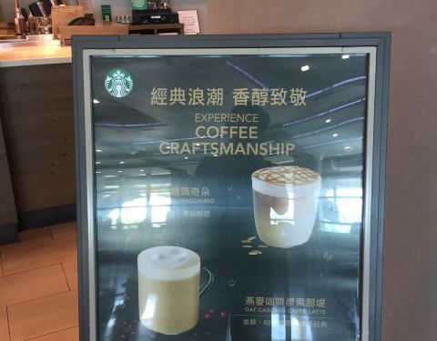 Starbucks 在台湾也有不少分店,到达高雄小谟国际机场后,出来就进去买了一杯咖啡,最便宜那种本周咖啡85台币,比国内的略为贵一点点。