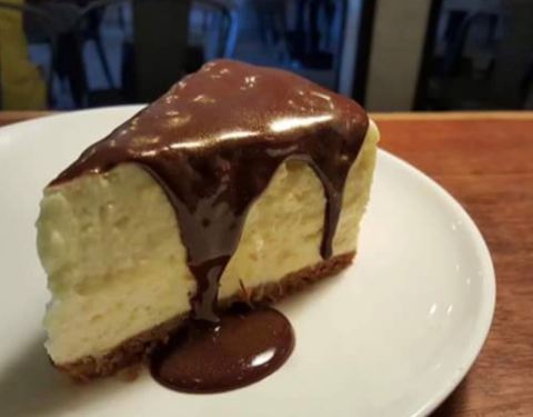 住在马国新山的朋友们不时聚在一起喝咖啡聊天。他们都会推荐新山好吃的给我们。这天我们决定来这家有特色兼设计独特的咖啡馆。 我是冲着他们的榴莲咸蛋黄芝士蛋糕而来的 很奇怪的组合,但是还蛮搭配的。用的芝士不是重口味的,所以可以尝到咸咸的蛋黄和微甜的榴莲肉。价钱就有点贵。 其他有特色的蛋糕口味是咸蛋黄巧克力、芝士豆腐乳、肮脏提拉米苏和清新的柠檬芝士。 我们也点了一个咸蛋黄鸡扒,不过味道一般。菜单上还有咸蛋黄华夫饼,意面、pizza、沙拉等。 点了一杯白咖啡,味道太淡了,不是很喜欢。酸酸的花茶倒是挺开胃的