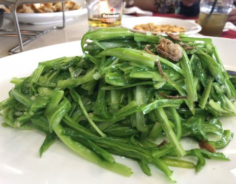 前身是大排档煮炒,后来在机缘巧合下开了间餐馆。菜色取名五花八门响当当,但味道却一般般