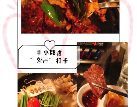- 韩国弘大非常地道好吃的烤牛肠店황곱,价格比其他店便宜,味道也非常棒,来韩国旅游的宝宝们一定不要错过哦