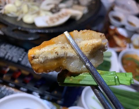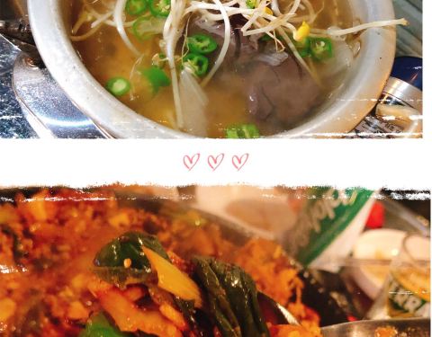 今天又和朋友约了一波烤牛肠,我们点的是烤牛小肠小组,里面有牛心、牛小肠、牛大肠、牛胄胃四个部位,还有韭菜豆芽菌菇土豆等配菜 上来的时候被那个印着店名的杏鲍菇给萌到了~老板好有创意啊!而且老板很贴心地...今天又和朋友约了一波烤牛肠,我们点的是烤牛小肠小组,里面有牛心、牛小肠、牛大肠、牛胄胃四个部位,还有韭菜豆芽菌菇土豆等配菜 上来的时候被那个印着店名的杏鲍菇给萌到了~老板好有创意啊!而且老板很贴心地帮我们剪牛肠,自己不用动手就可以享受美味大肠 牛肠被烤得焦黄,吃起来真的好满足,觉得被烤牛肠治愈了 另外我还很喜欢老板送的牛血汤,中国人吃猪血、鸭血比较多,其实牛血也好好吃!牛血比猪血鸭血硬很多,吃起来口感也是很特别的啦! 吃完再逛逛弘大,在附近吃个甜点,完美!