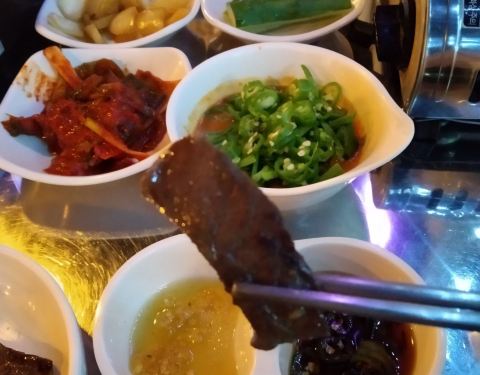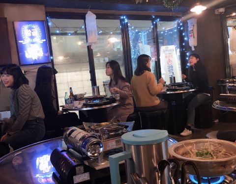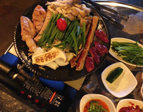 - 韩国人除了烤肉以外,非常喜欢烤牛肠。经常很多人一起吃着牛肠喝着酒非常适合聊天约会