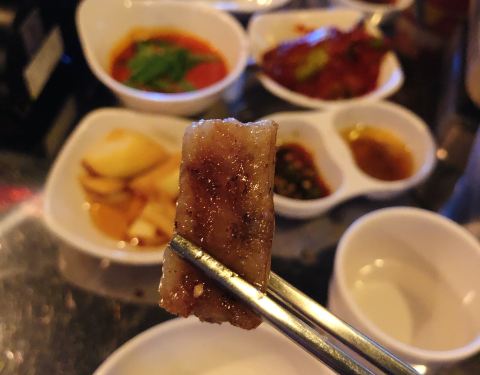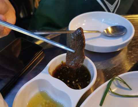 今天来弘大梨大打卡,偶遇一家弘大美食店!这家店主打牛小肠。我们3个人点了两人份的牛小肠套餐和生拌牛肉,还有炒饭。这家牛小肠非常干净,有三四个部位,超级Q弹,烤的有点焦焦脆脆的时候最好吃了配菜还有韭菜蘑菇土豆等,最后一起炒来吃很香~ 生拌牛肉真得好好吃啊,我第一次吃就爱上了!一点没有奇怪的味道,非常软嫩! 吃腻了韩国烤肉,偶尔来吃牛小肠也是极好的~这家店只有我们一桌外国人,都是韩国人来吃,味道很正宗!