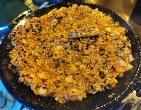 韩国人除了烤肉以外,非常喜欢烤牛肠。我也是来韩国以后喜欢上了这个味道。 弘大这家的牛肠店,韩国比较接地气的店了,经常爆满,我们特意早早去的,虽然店铺不大,圆桶和圆桌的标配是韩国人喜欢的感觉。经常很多人一起吃着牛肠喝着酒非常适合聊天约会。店铺里有中文菜单,我们点了两人份牛小肠,小菜和牛血汤都是送的。牛血汤有一点青辣椒,微辣爽口。牛小肠摆的太好看了,老板帮我们把它剪好又摆好了,还告诉我们先吃哪一部位后吃哪一部位,沾着酱汁更好吃呢!!! 最后一定要来个炒饭,香的不行,我们俩人点了两份炒饭~