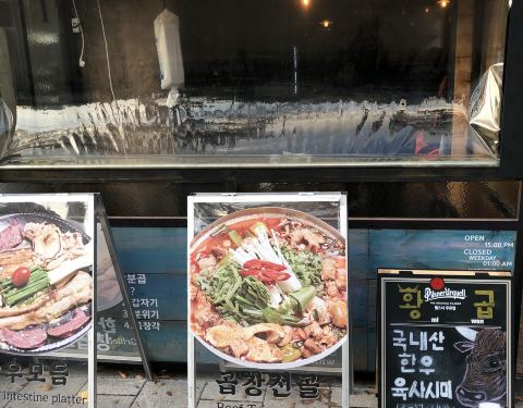 韩国弘大非常地道好吃的烤牛肠店황곱,价格比其他店便宜,味道也非常棒,来韩国旅游的宝宝们一定不要错过哦