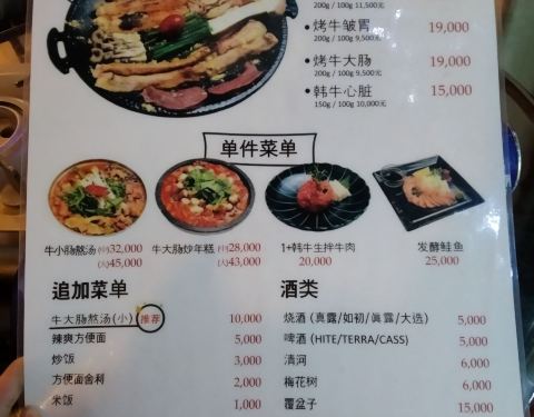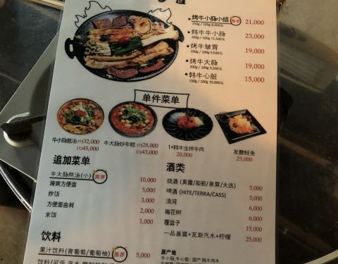- 这家有中文菜单可以轻松点餐,店员小哥哥会帮忙烤大肠,所以不用担心自己烤不好