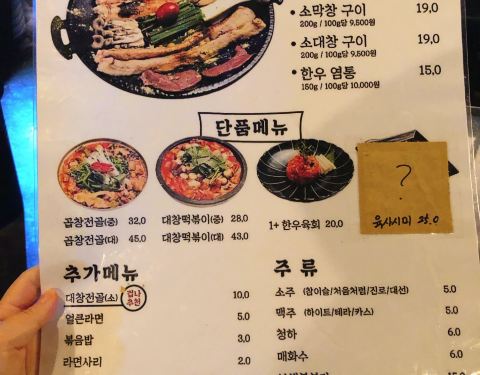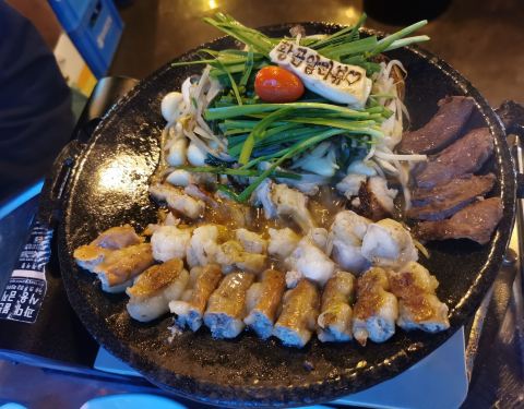 他家的烤大肠真是神仙店铺了!!!! 太太太好吃了! 大肠烤的刚刚好,一咬就爆汁的那种!!! 我太爱了!!!! 强烈推荐大家过来吃,我和朋友点的是所有肠都有的锅,店内提供中文菜单哦~~ 唯一不足的是分开你还有点少,后续再加个炒饭比较好! 另外下午三点才开门哦~~ 千万不要去太早