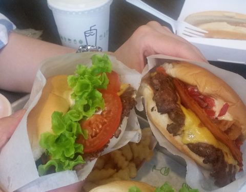 听说Shake Shack现在火到爆,必须来尝一下!的确不一样!过了饭点,不用排队,汉堡味道不错,现做的,肉饼汁水很多,薯条也很好吃。