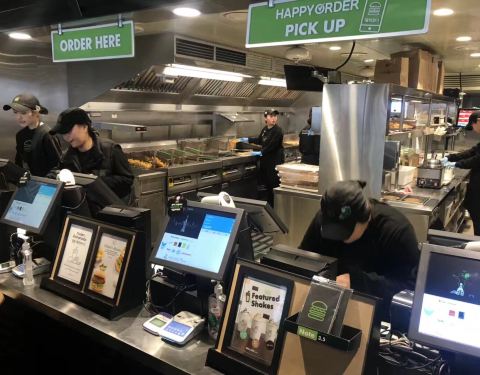 汉堡40-80元一个,比较贵,但肉质还行很嫩。香草奶昔很甜而且奶味很重,适合喜欢甜食的人。大约35元一杯。酱料可以自取,有两种口味。点单的柜台有三个,所以排队也很快,但是点单的年轻服务员不会说英文。