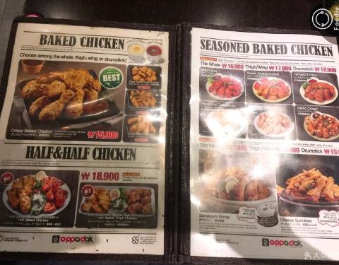 『位置』鼎泰丰正对面,这一条街都是各种炸鸡耶 『环境』有两层,不算很挤。老板娘是个笑眯眯的大婶,不会中文,但是英文还是比较通的。菜单中英日韩文对照,还有图。 『菜品』小菜好吃!而且可以加。如果要喝水要让大婶去拿来,一坐下是没有提供的。点的招牌炸鸡,额比全家桶分量要大哦,不过比全家桶好吃哆啦!一份两人都吃不完,我们还点了薯条,结果剩下两块鸡肉。隔壁日本情侣点了两份鸡竟然吃完了,非常人也。 炸鸡有好多种口味选择,有脆皮炸鸡/辣味炸鸡/酱油炸鸡/葱拌炸鸡等等,也可以选择双拼。虽然这家比全智贤代言那家差,不过韩国炸鸡确实跟国内有差,真的还蛮好吃的哈哈…应该有加了什么特质调料之类的,外皮超级酥脆,鸡肉也算新鲜。