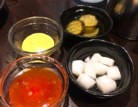 韩国的炸鸡可是非常出名,外带也很方便,有三个口味,蒜香,甜辣还有原味,可以拼口味,一份有十几块鸡肉,分量还是挺多的,肉都非常嫩,还会给很多沙拉,可以根据口味选择芥末酱和甜辣酱,搭配啤酒很合适,服务利索,小姐姐的中文还说得很不错,环境不大,还是带回酒店慢慢享受比较合适。