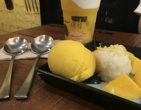...是小有名气的甜品店了啊,泰国这里的甜食真的是很好吃啊,这里的水果很新鲜的做成甜品味道自然不会差