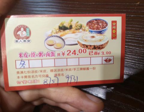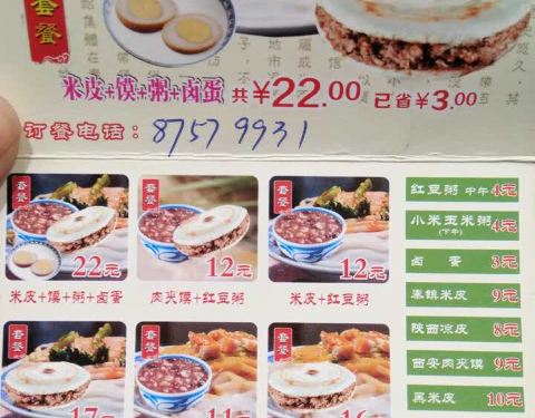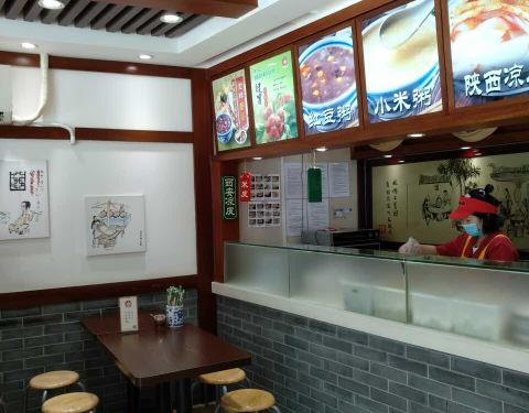 小米粥相对比较稠,分量稍少。凉皮分量微少。肉夹馍的肉比较干没有腊汁。