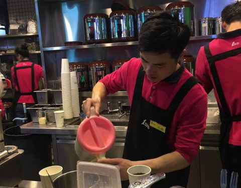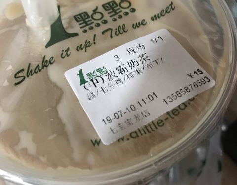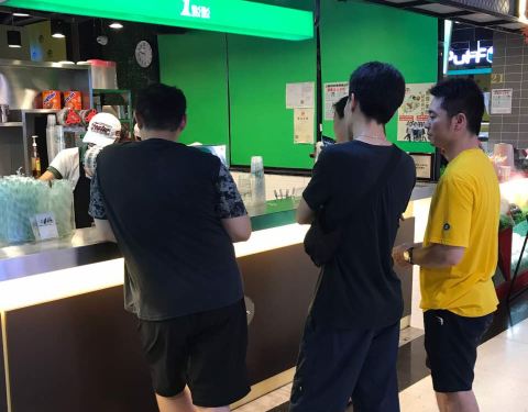 不管什么时候人一直很多,连外卖小哥都不少,周末时,小小一个店铺能站满九个工作人员,还有一个在外边不停地秤茶叶。个人觉得一点点的茶比coco好喝,珍珠非常好吃,加料也不用钱。大推奶青与四季青茶