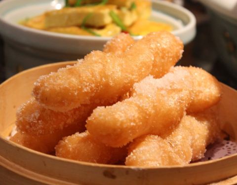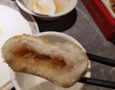 没有吃鱼头,但吃了我念念不忘的鱼丸汤,喜欢这种清淡的口味,鱼丸软弹,汤里放了菌菇,鲜美。还点了糖饺和奶黄包,食材都让人吃得放心。