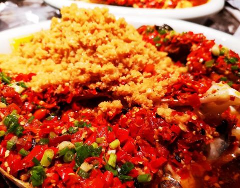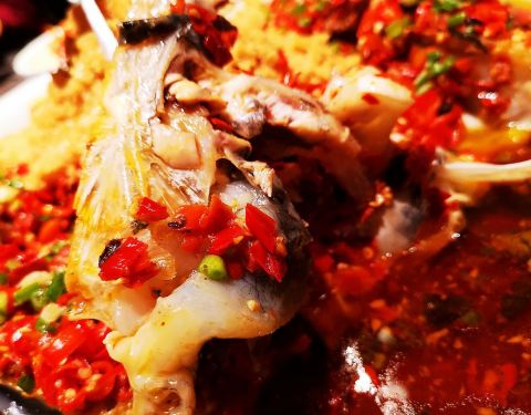 - 剁椒鱼头还不错,我这一家据说是红遍大江南北的网红湘菜店他家的特色就是辣,所以他家的馒头也是红红火火的