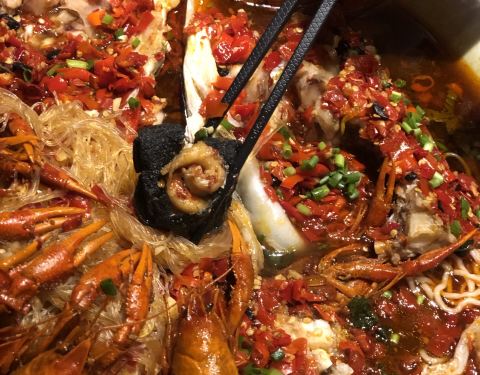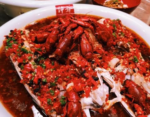 - 说到菜品,不得不提--|小龙虾剁椒鱼头^,本人也是第一次尝试。 小龙虾个头挺大的,肉质饱满,好吃
