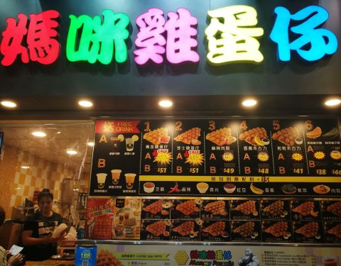 妈咪鸡蛋仔(红磡店),招牌五彩斑斓,其实是网红小吃