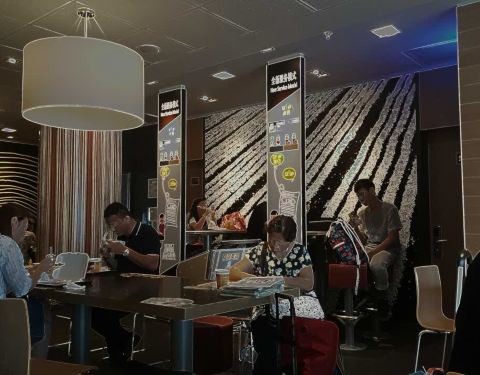 t2没有pp卡休息室,只有买麦当劳垫饥了,机场里的麦当劳比外面贵是可以理解滴,这家也有自助点餐,效率杠杠的,服务也不差。