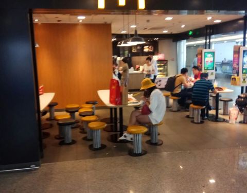 麦当劳首都机场店位于T2航站楼一层国内到达区,由于机场客流量较大,而且相对候机或者延误时间比较多,所以里面的顾客也很多,基本很难排到座位。