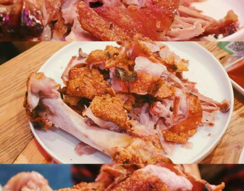 【 排球汉堡 】真的超大size!难怪叫排球汉堡,当然了!更是庆祝咱中国女排夺冠,面包烤制的非常赞,外酥内软,内里是火鸡胸肉,火鸡腿,火鸡香肠,蔬菜牛油果等,一口吃下去,多汁且层次分明。 【 冠军杯 】炸物很丰富,鳕鱼块、鸡块、鱿鱼圈、虾酥卷、咖喱角、玉米片,炸衣薄脆,火候刚刚好。 【 德国脆皮大猪肘 】猪皮超级酥脆!!一定要尝尝!烤制的咸味中还带了一些鲜甜,非常喜欢,猪肘肉嫩,连着酥皮蘸蜂蜜芥末酱or蕃茄酱都很不错。