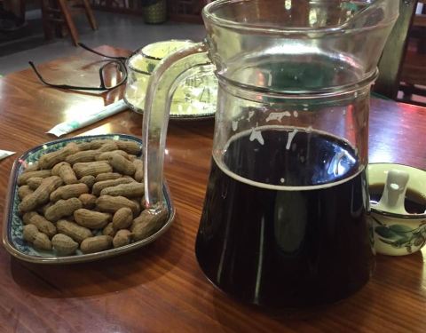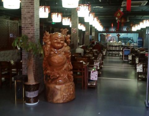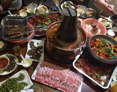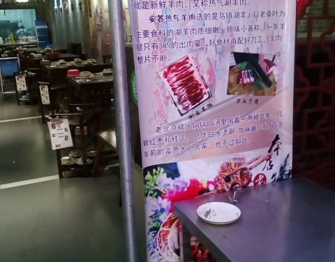 一家装饰古朴、整洁宽敞的中式火锅餐厅,这里的主打菜是乌镇出产的热气羊肉(还有数十款荤素食材供客人选用),使用老北京烧炭铜锅及党参白汤锅底。