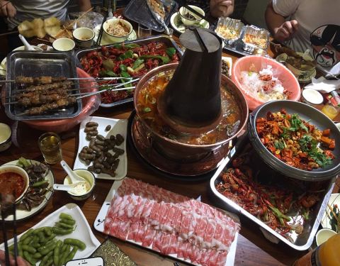 家里人共8人点了火锅还有烤串小龙虾是特色