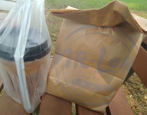 楼下猪扒包好像还是连锁店啊,这次团购的套餐有猪扒包一个,柠茶一杯。店面比较小,哈哈哈这样的店一般不会很大。打包的包装还不错,味道还可以吧