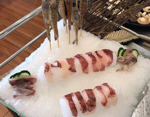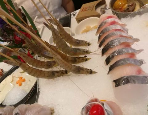 - 最爱他们家的斑节虾和鲍鱼,鲍鱼和斑节虾都是活的上来的,进锅的时候虾子还会乱蹦,当心水会溅出来,...