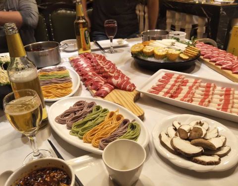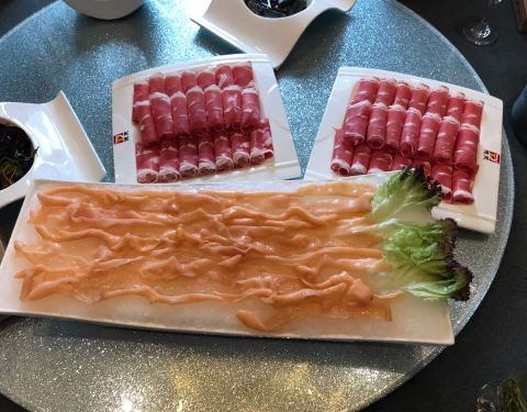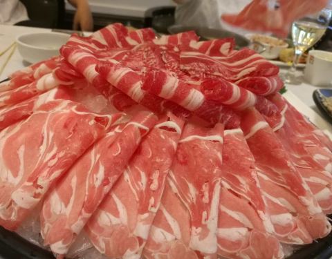 环境一如既往的很棒,最爱他们家的斑节虾和鲍鱼,鲍鱼和斑节虾都是活的上来的,进锅的时候虾子还会乱蹦,当心水会溅出来,烫着,毛肚涮一分钟就好了,雪五花肉很棒,很嫩一点点肥,很有满足感。