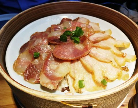 - 我以为通过蒸制,提温,增加腊味咸香,但眼前的这盘腊味合蒸火候大,口感软,嚼劲、咸香味明显不足