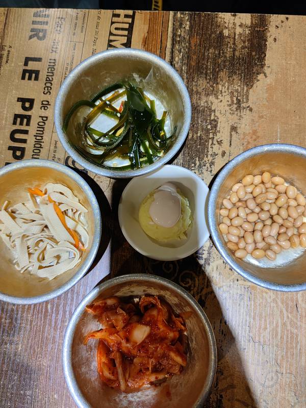 今天突然想吃班布大叔的饭,就和朋友一起去了。本想吃蔬菜石锅拌饭,看到有亲子饭就迫不及待地想试一下,结果很是失望。鸡肉肉质很嫩,但是上面有好多鸡皮,吃不下呀。鸡蛋和芝士放在一起真是迷之口味。不太喜欢。米饭有点太软了,硬一点会更好。今天的米饭普遍软,朋友的牛肉石锅拌饭米饭也很软。有点失望这次。但是每次都送小菜好评!