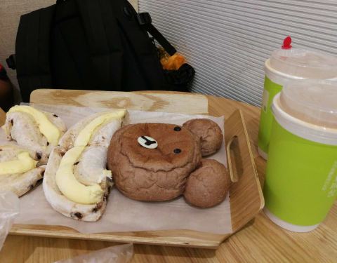 第一次来,平常都是喝台盖的,听说两家是亲戚啊?人很多生意很火爆,老妈比较激动跟工作人员发火,抱歉啊!面包造型独特,口味也独特,也谢谢工作人员没跟老妈一般见识!