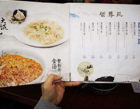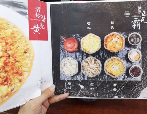 坐地铁到巨鹿路上来走大约5分钟左右吧,很容易找到,好运气的我们找到了这家大年初六还有正常营业的餐厅,估计是过年而且去的时间刚好,不用排队,平常都需要提前等候。人少没点最贵的巨无霸,然后点了双拼蟹黄蟹...