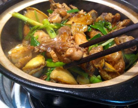 - 芳村鸡煲现在非常的出名,店内食客很多,需要等位。煮一会鸡肉就很入味了,鲍鱼也好吃