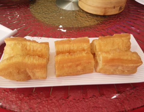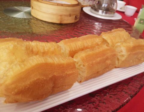 水晶虾饺皇,挺大颗的,虾也多,皮也比较厚。大油条,确实挺大的,配上豆浆味道很好。猪颈肉炒肠粉,酸辣酸辣的味道,比较开胃。韭菜猪红,味道还可以,猪红大块,汤也好喝。