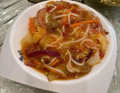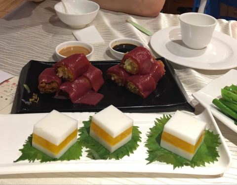 环境不错,美食也很够味,就是忘记提前定位,加上周末人好多,比较吵。好喝的菊花茶。吃的很满足,很饱