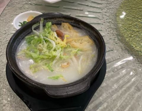 - 环境不错,美食也很够味,就是忘记提前定位,加上周末人好多,比较吵。好喝的菊花茶。吃的很满足,很饱