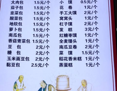【口味】有粘豆包!就是粘黄米面,即糜子米做的面皮外层,里面红豆馅,凉的,热的更好。还有全麦馍头,红枣馍头,普通白面豆包,花卷,还有南瓜红豆卷。还有五角钱的小馍,卖得特别快!