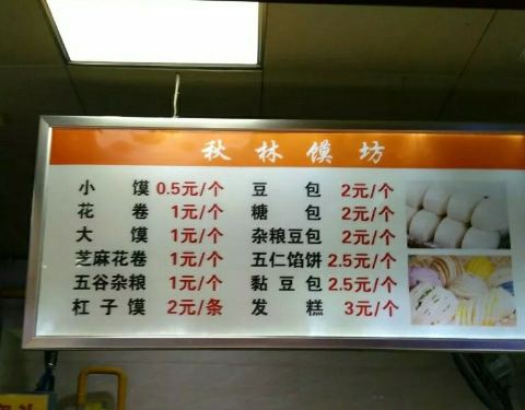秋林公司现在也有许多分店!但具规模的秋林馍坊还是得属秋林总公司!就是最早的秋林李家村这家店,他家的馍品种多!而且因为买的人多,所以新度有保证,只是服务偏差。图为吉祥分店的,各公司品种基本相同。