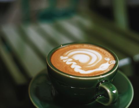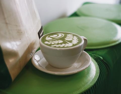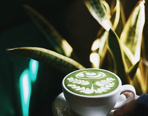 吃多了网红咖啡不如来网绿咖啡拔草吧! 窗口是开放式的,一进门就被绿色主题吸引 从门口的那几块砖头到楼梯到杯子到抹茶拿铁还有转角处的绿青蛙 放眼望去都是绿油油,再点一杯抹茶拿铁、拉花是只小蜗牛,看着妹子拉花也是一种享受。 味道偏甜,喜欢喝甜一些的可以点哦。 楼上还有不同的区域划分,但是我独爱楼梯下的那个小角落,有阳光,有绿植。 选用明治牛奶 Ps:8-11点买单打八折,点评有优惠好像都没和我们说。