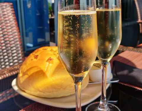 ...可以从面食类到肉类, 点上两杯起泡酒,晒着太阳,真舒服 简简单单的一个午餐,也可以很开心⊙▽⊙