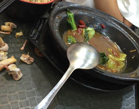 今天中午人不算太多,上菜速度快了!微辣的牛肉,儿子超爱!空调今天挺凉快!