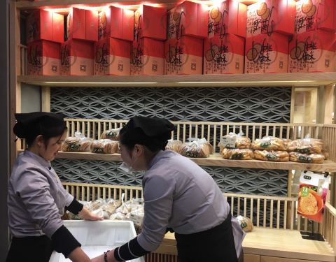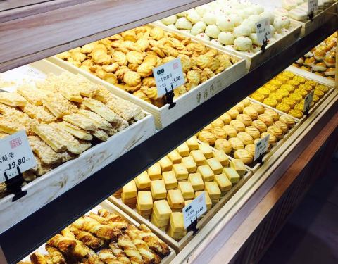 泸溪河桃酥大的店面装潢很有特色,老远就能够看到里面灯火通明,有一些老顾客在选购桃酥礼盒、老婆饼...