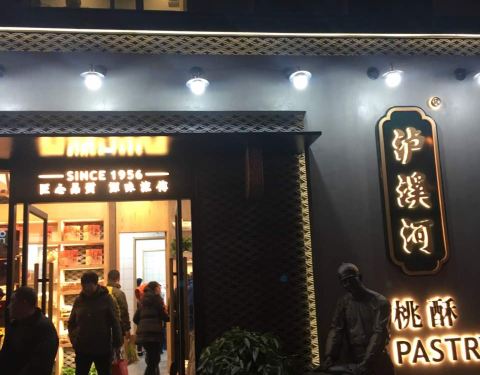 - 泸溪河桃酥大的店面装潢很有特色,老远就能够看到里面灯火通明,有一些老顾客在选购桃酥礼盒、老婆饼...