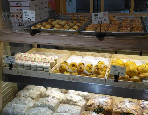 性价比很高,价位比一般面包房便宜,也都是当天生产的,最爱肉松卷和青团