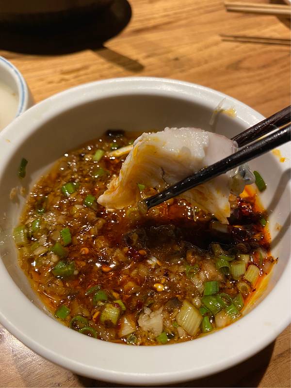 很好吃,这次要的麻辣口味,配上土豆饭炒鸡好吃,尤其是鱼骨的部分,鱼肉也很入味儿,里面的蒜很香,薄荷牛肉也好吃!