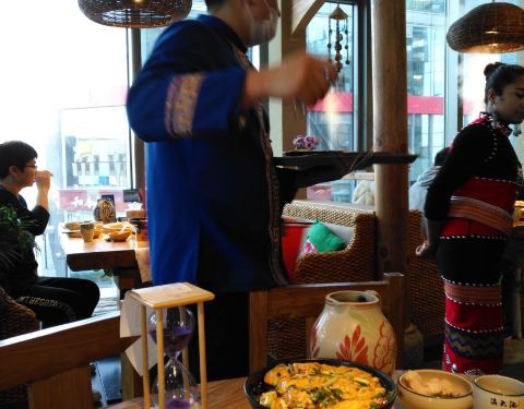 这里的布置非常有民族特色,而且里边的生意非常的红火,清晰礼拜都需要排队,等号到这里品尝云南的美...