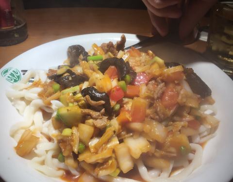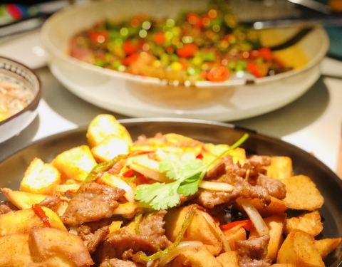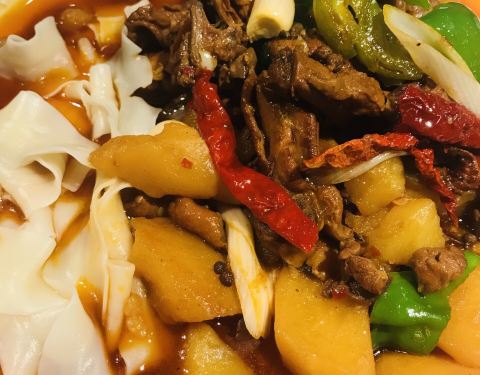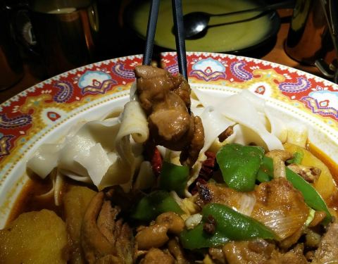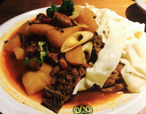...润的土豆,辣中有香、粗中带细,是餐桌上的佳品之选呢,大盘鸡份量足,烩面还是很正宗的,劲道有嚼劲
